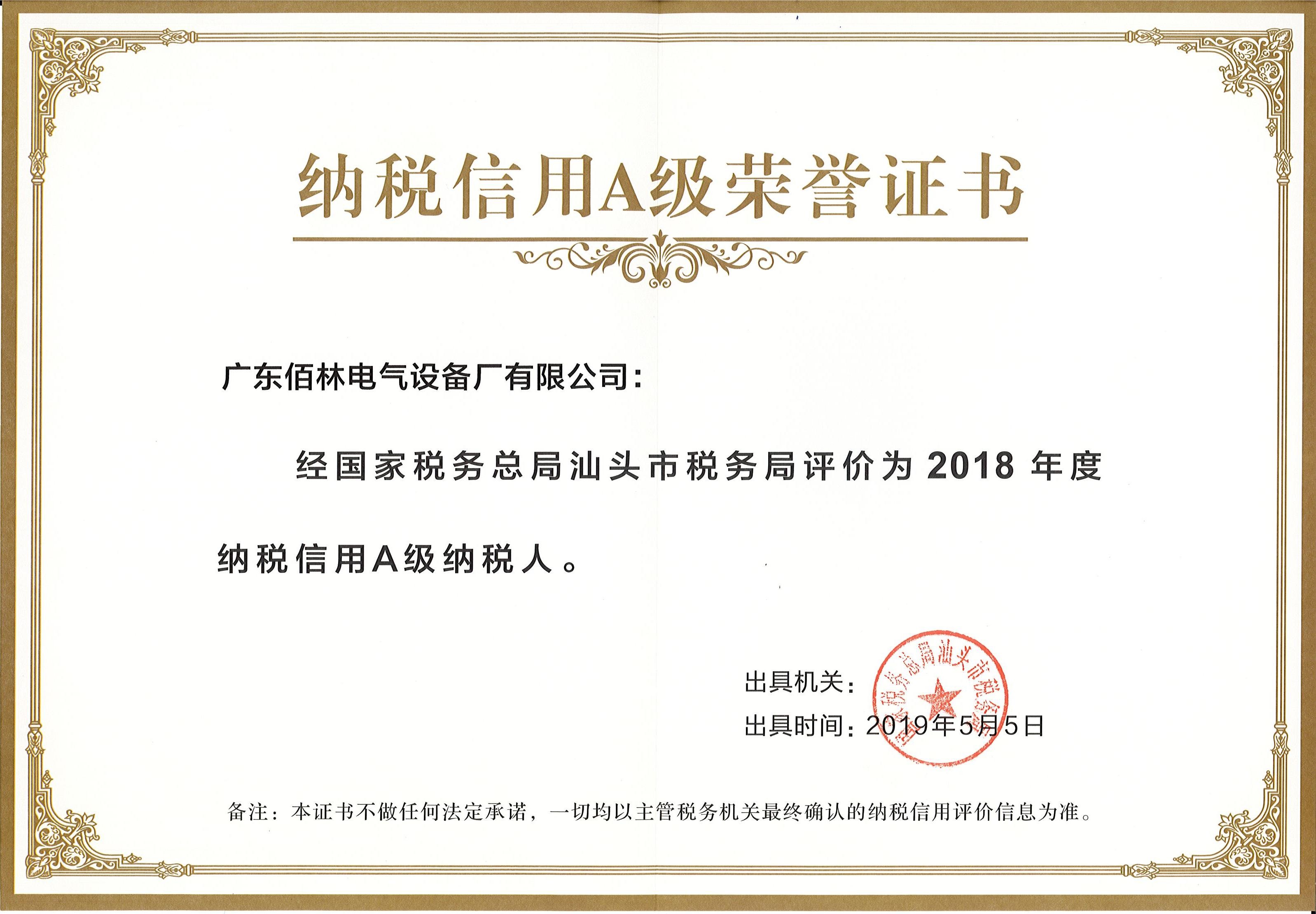 荣誉喜讯:我司获得“2018年度纳税信用A级纳税人”荣誉称号