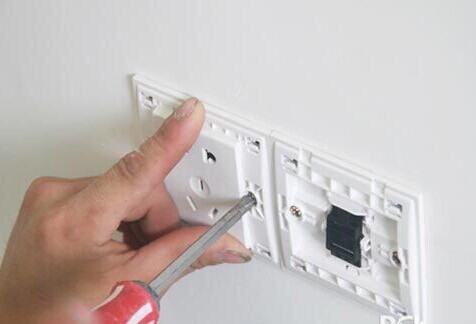 【第五步】—墙壁开关插座面板固定将墙壁开关插座紧贴于塑料台上,方向位置摆正,然后用工具把螺丝固定牢,最后盖上装饰板。